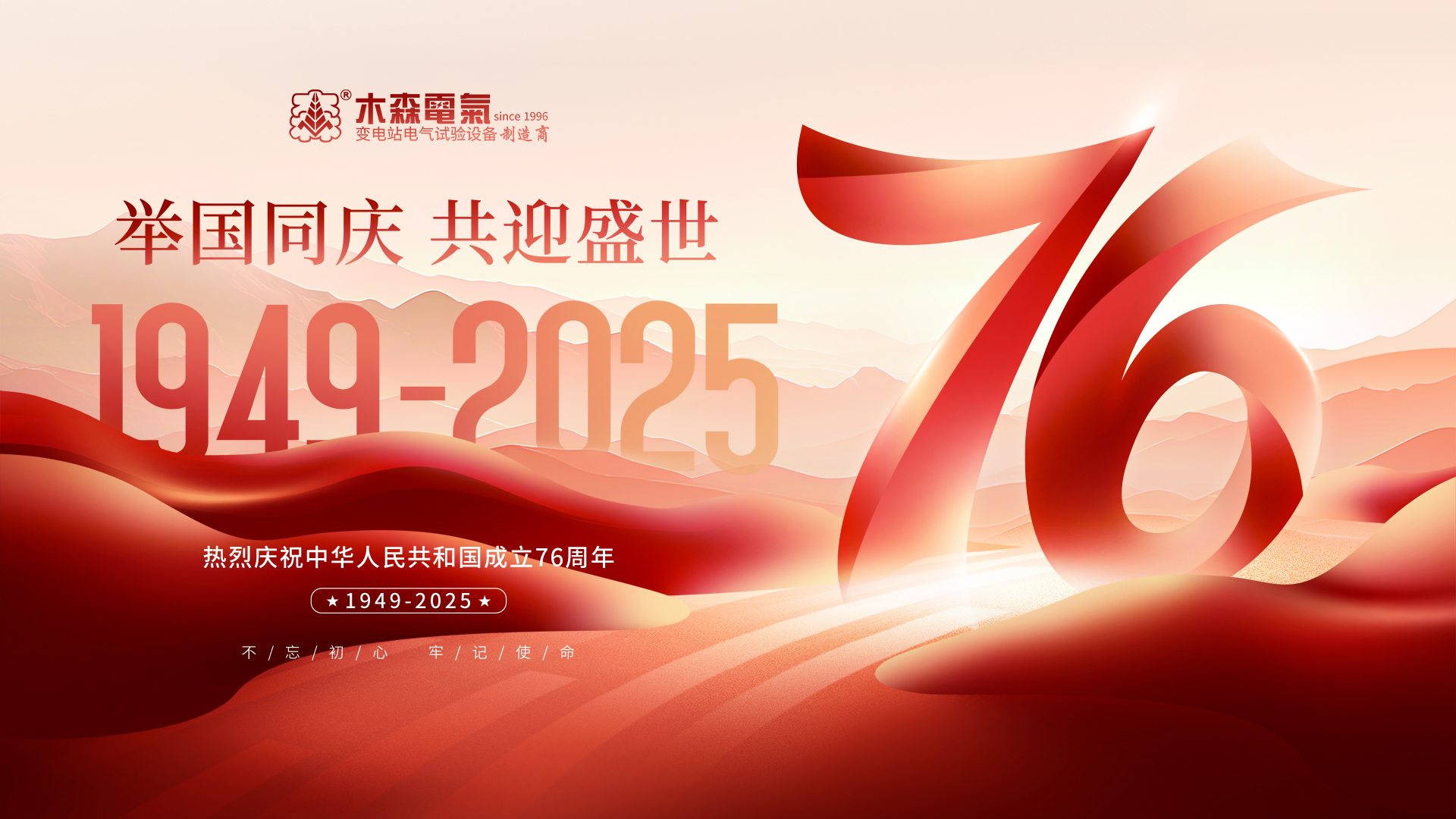 ??七十六載風(fēng)華正茂,九州方圓燈火輝煌。?? 值此中華人民共和國(guó)成立76周年國(guó)慶佳節(jié)來(lái)臨之際,武漢市木森電氣有限公司攜全體員工,向長(zhǎng)期以來(lái)信賴(lài)與支持我司發(fā)展的各級(jí)電力單位、行業(yè)伙伴與廣大客戶(hù),致以最崇高的敬意和最誠(chéng)摯的節(jié)日祝福!
